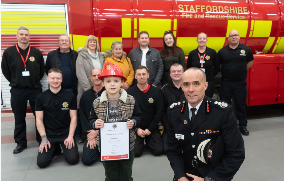 As a result of his actions, Oliver was presented with his commendation by Chief Fire Officer, Rob Barber, at Cannock Community Fire Station earlier this month.