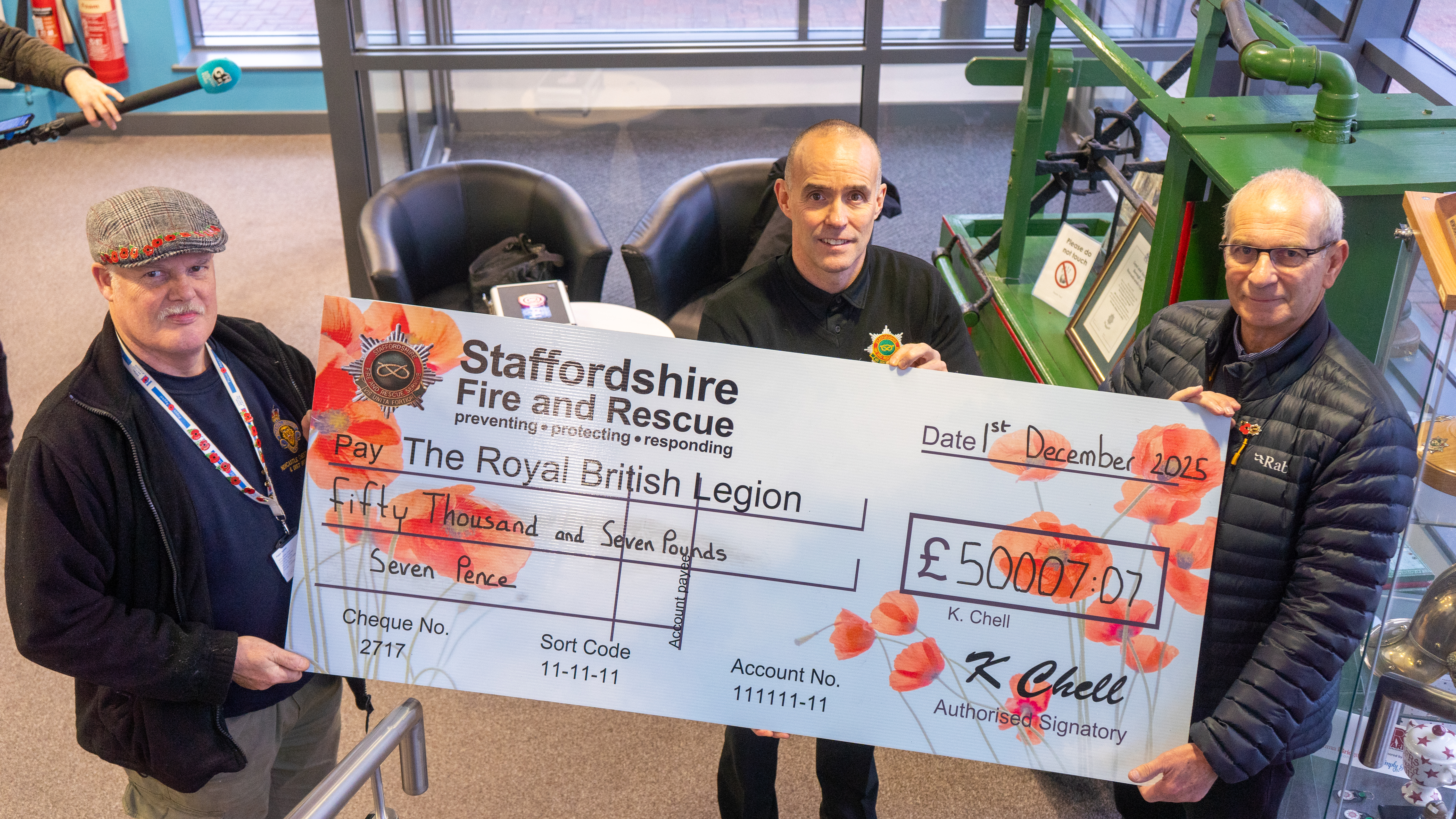 Kelvin recently presented the cheque to representatives from the Royal British Legion alongside Chief Fire Officer, Rob Barber.