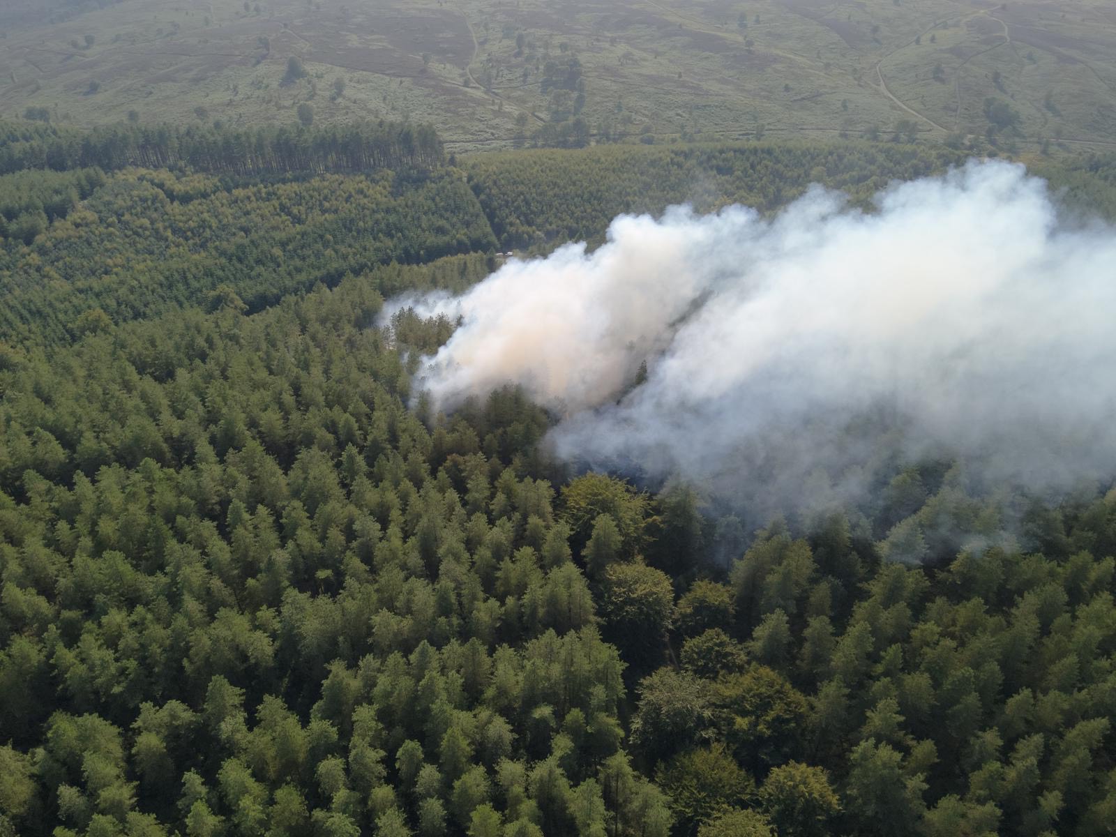 Eight appliances and two water carriers attended the scene and found a fire measuring approximately 100 by 100 metres.