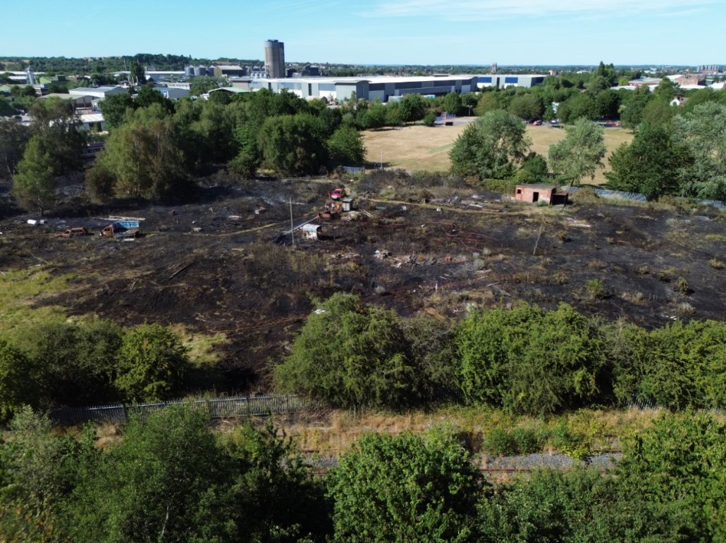 Just after 1pm on Saturday (12 July), six appliances attended a wildfire measuring around 100 by 50 metres on land off Caraway Drive, Branston.